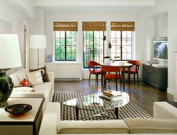 It’s interesting to try new things. Sometimes traditional ideas about living room decor aren’t the best solution for a small space. Instead of using blinds for window treatments, use long, flowing drapes because they draw attention to vertical space, thus expanding the area of the room.